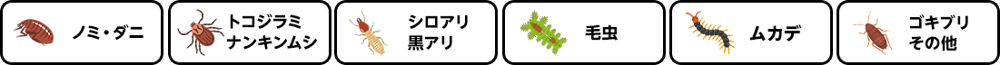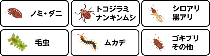 (ノミ・ダニ・トコジラミ・ナンキンムシ・毛虫・ムカデ・ゴキブリなど)