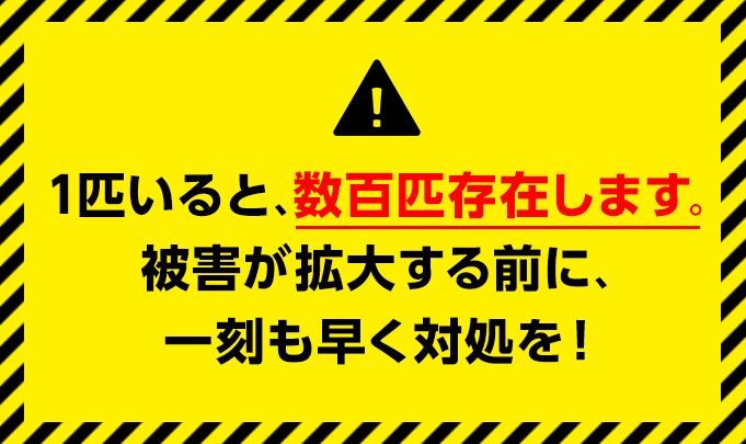 プロの駆除でなければ、さらに被害が拡大する恐れがあるので絶対におやめください。お近くのスタッフがすぐにお伺いいたしますので、まずはお電話にてご相談ください。