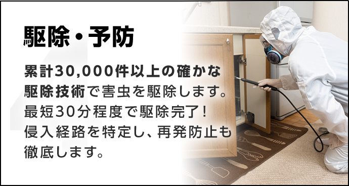 「今すぐ駆除して欲しい!」や「今日中に調査に来て欲しい」などの急なトラブルでもお任せ下さい!